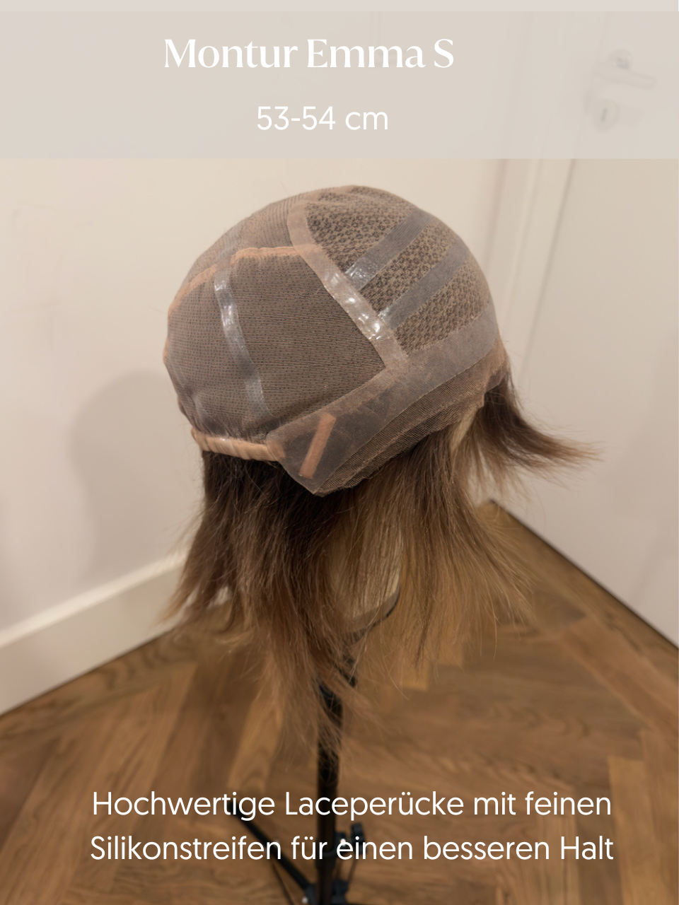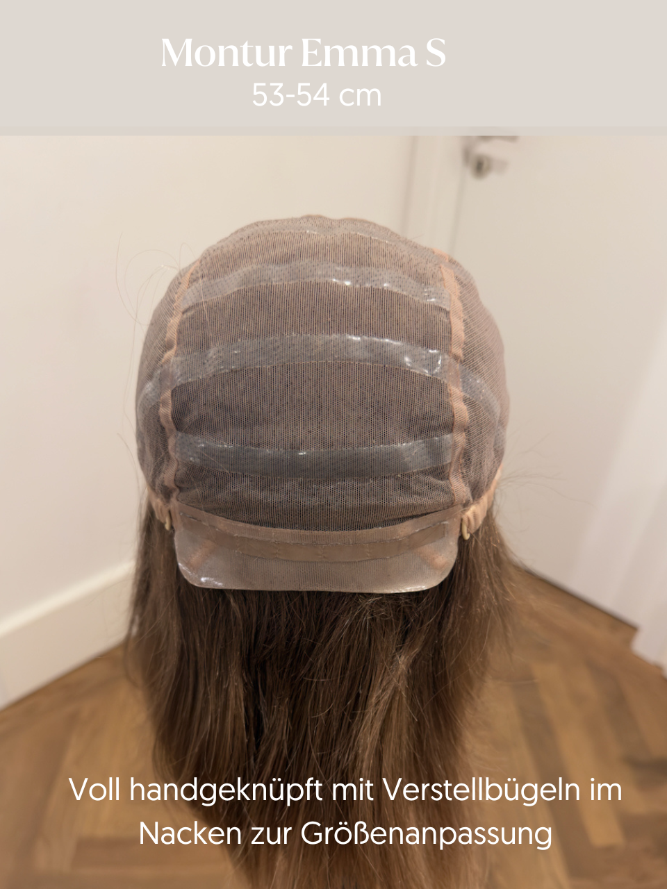 Emma ist in den Größen S (53-54 cm) und M (54-56 cm) erhältlich, wird zu 100% handgeknüpft gefertigt und ist dadurch besonders atmungsaktiv.
