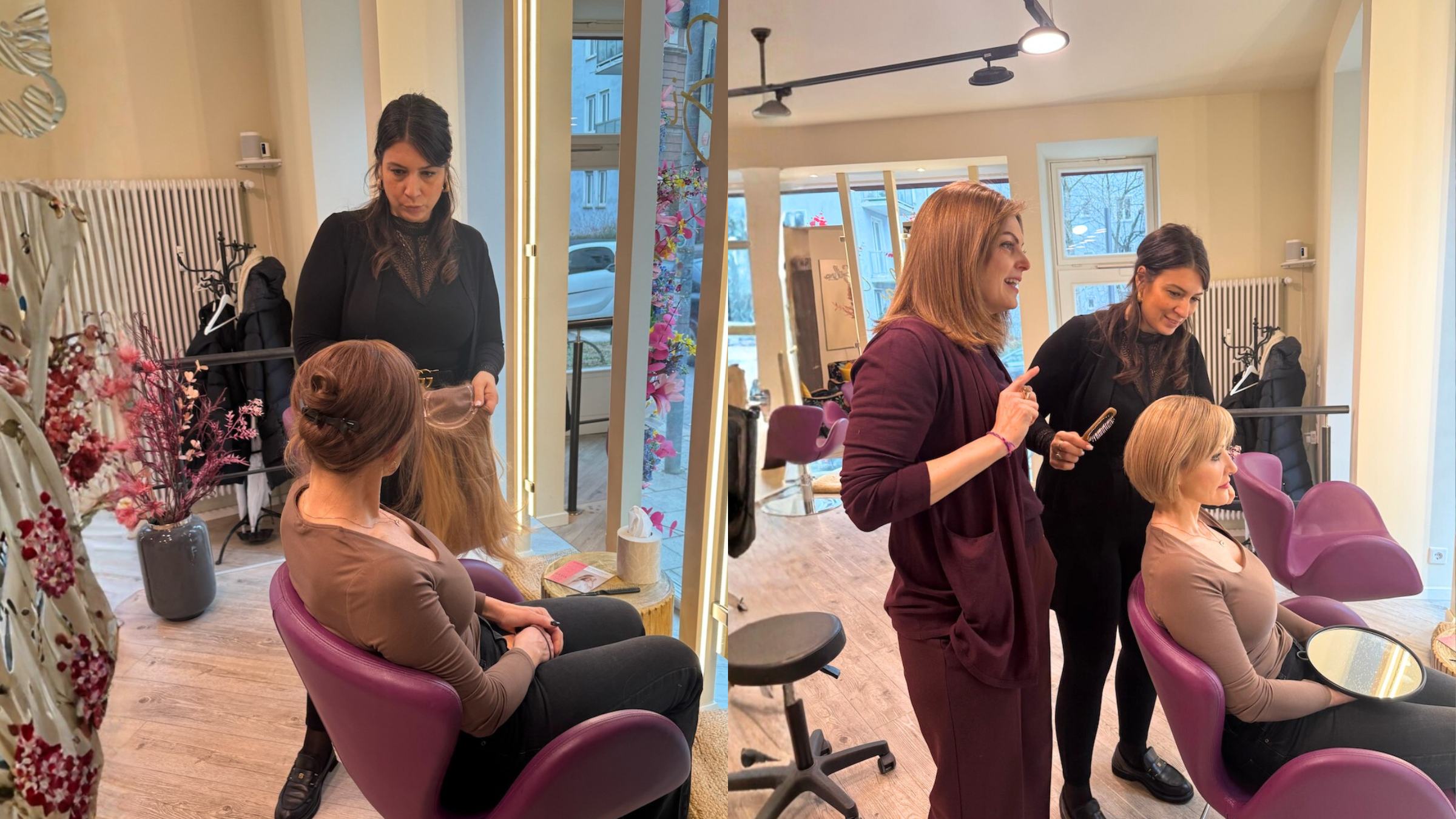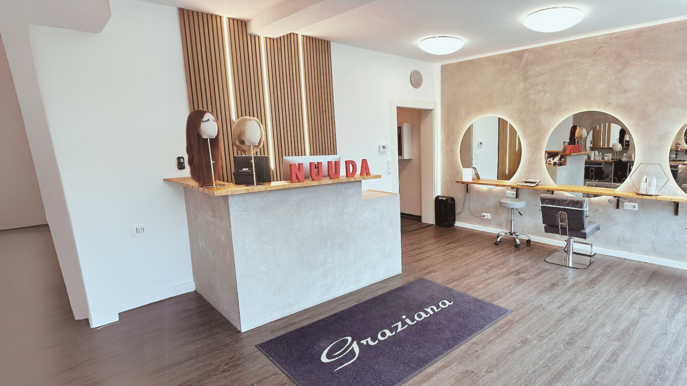 In Grazianas wunderschönem Salon lernst Du nicht nur uns, sondern auch alle neuen NUUDA Lieblingsperücken und Haarteile kennen. Du hast die Chance, diese in einem für Dich exklusiven Beratungstermin anzuprobieren oder Deine eigene Perücke wieder mit Pflege und Farbe neu erstrahlen lassen.